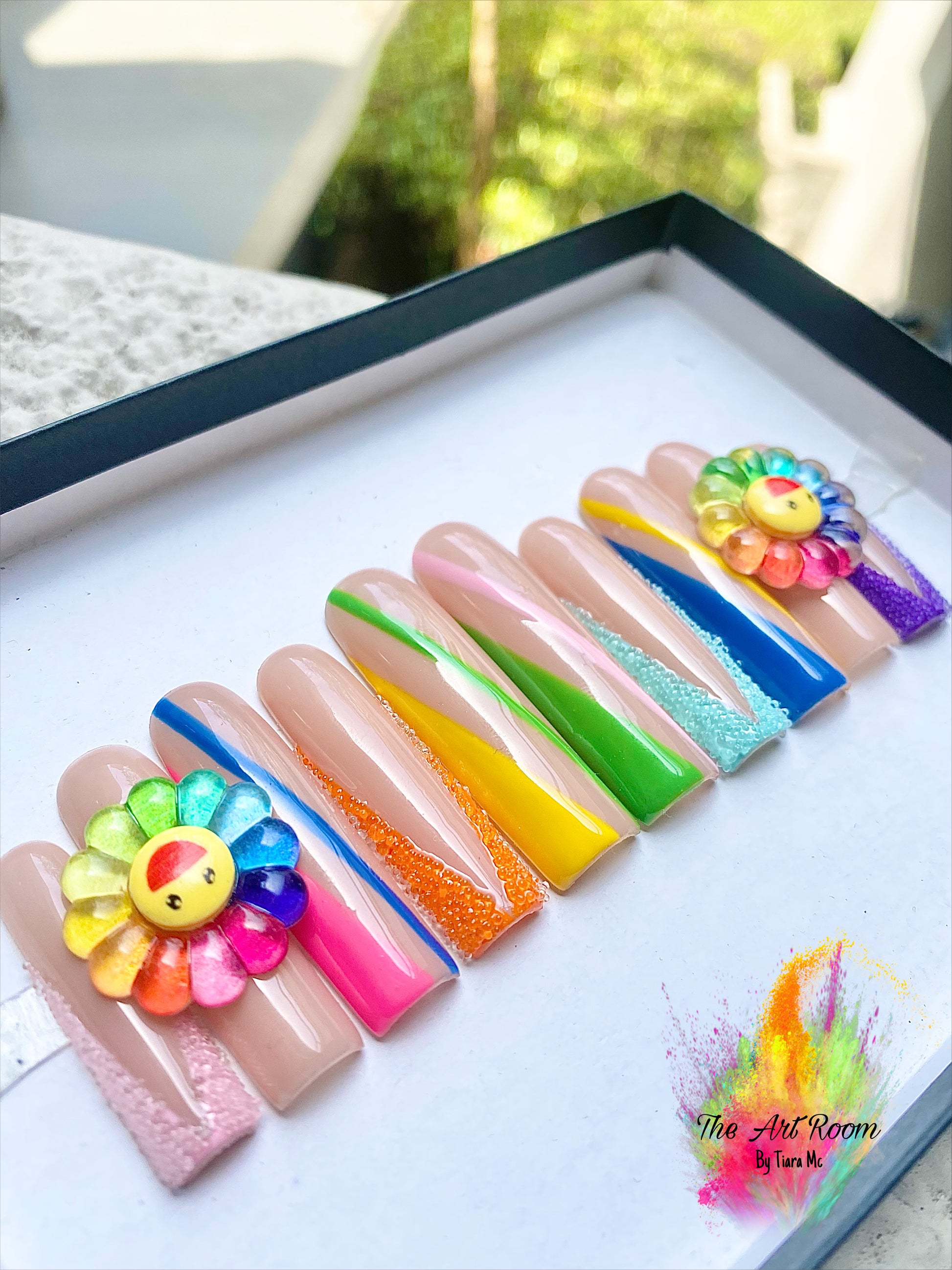 Rainbow flower press on nails